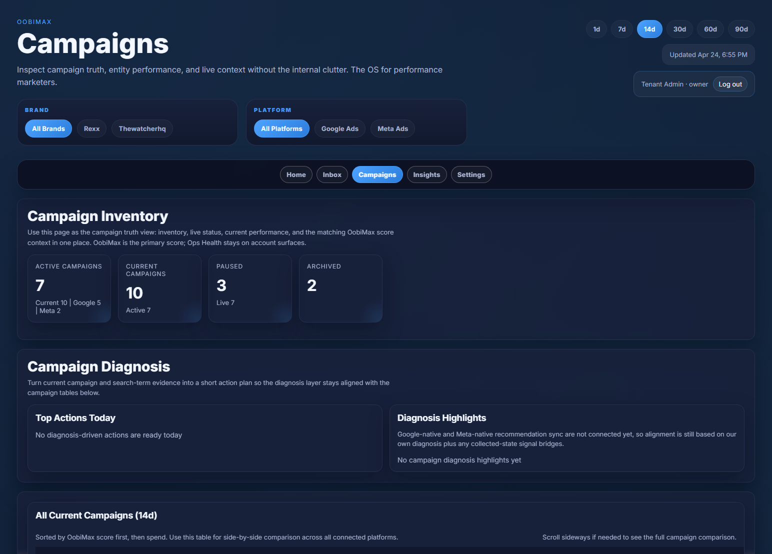 OobiMax keeps a readable loop between signal, action, and outcome.