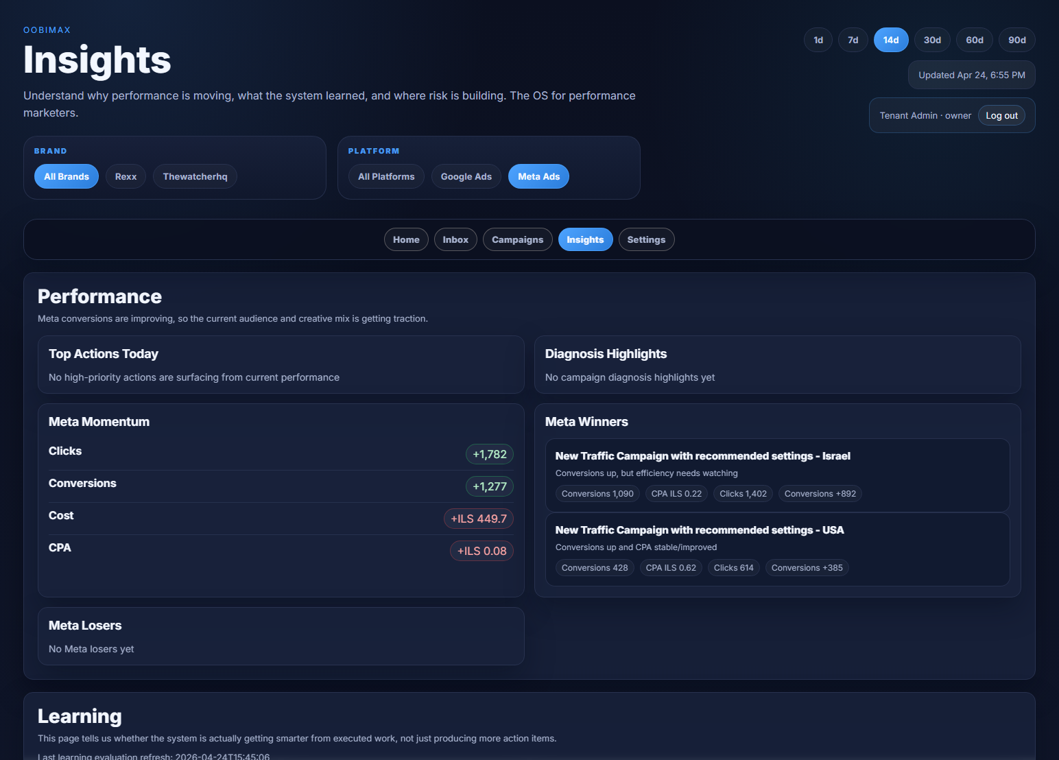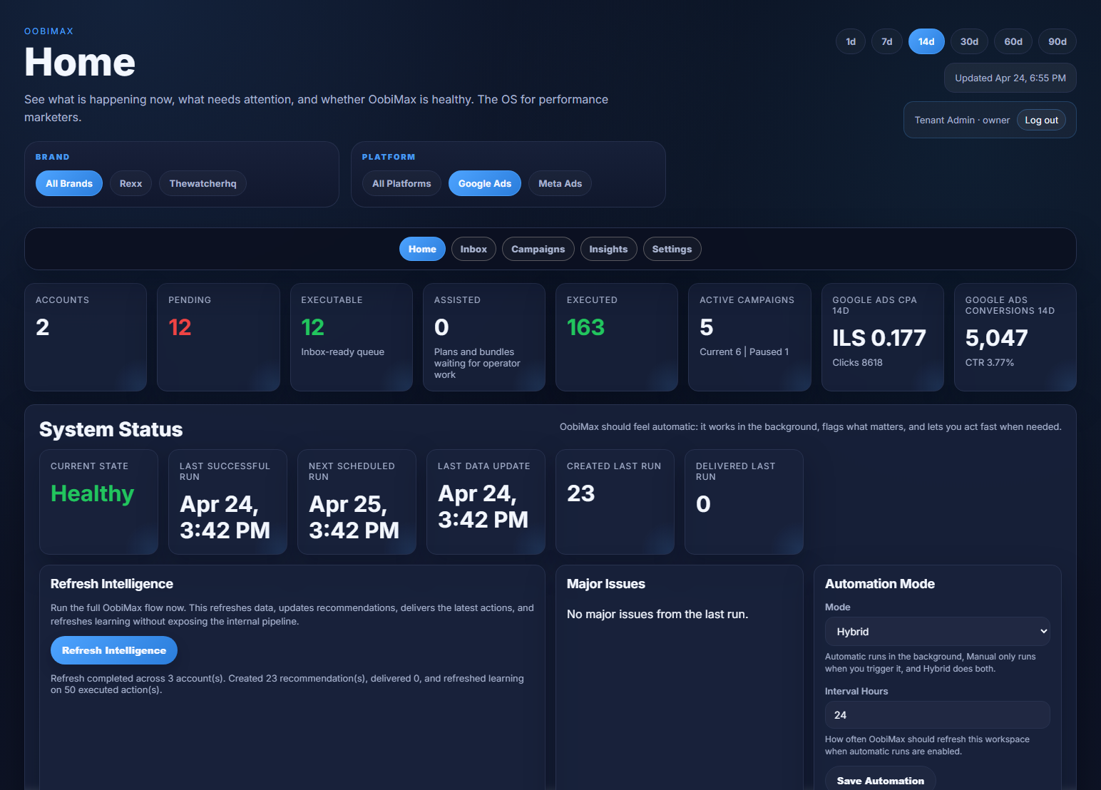 OobiMax turns signals into decisions: what to review, what to approve, what to change, and what to learn from.